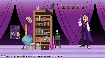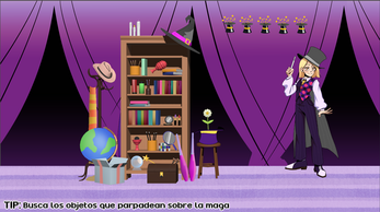 Un juego point and click donde controlás a un mago que ha perdido sus objetos mágicos dentro de un antiguo teatro. Los elementos están ocultos en un fondo lleno de detalles, y el jugador debe mover el mouse por la escena y hacer clic donde crea que están escondidos.
