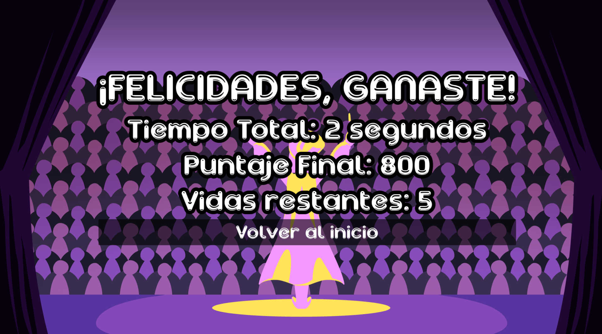 Las oportunidades de clic son limitadas: si se agotan antes de encontrar todos los objetos, el jugador es llevado a una pantalla que muestra el teatro completamente vacío, simbolizando que la magia se desvaneció. Si logra descubrir todos los elementos a tiempo, el mago recupera su poder y “la magia inicia”, activando una animación o cierre victorioso.